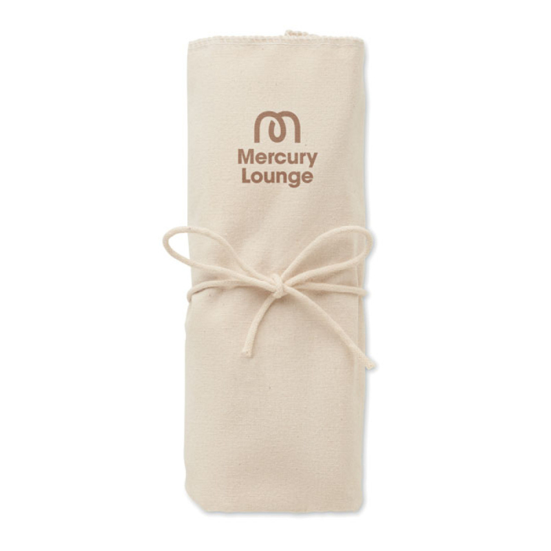 Koktejlová souprava v 220g bavlněném pouzdře se zavíráním na šňůrku. Obsahuje 5 dílů: oboustrannou odměrku (15 a 30 ml), dřevěnou drtičku, koktejlové sítko, míchátko a číšnický vývrtkový nůž.