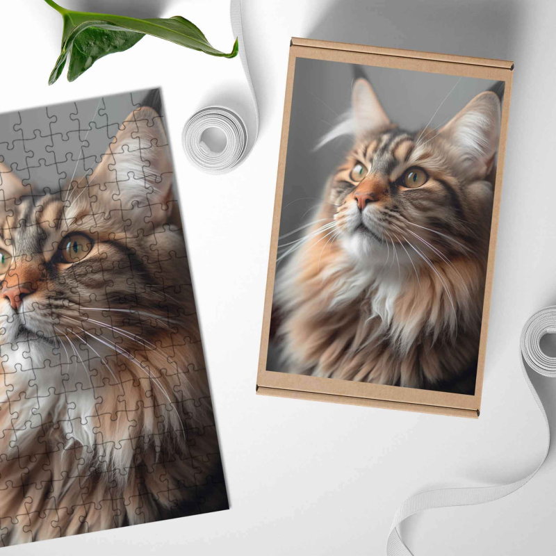 Dřevěné puzzle Mainská mývalí kočka realistic