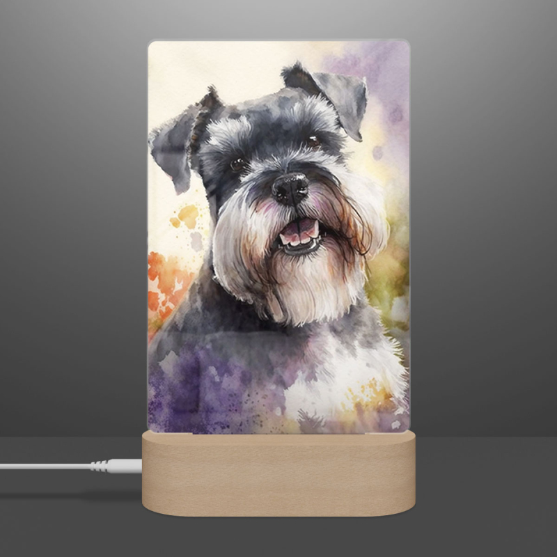 Součástí balení je akrylové sklo dle výběru, dřevěný RGB LED stojánek a napájecí USB kabel.