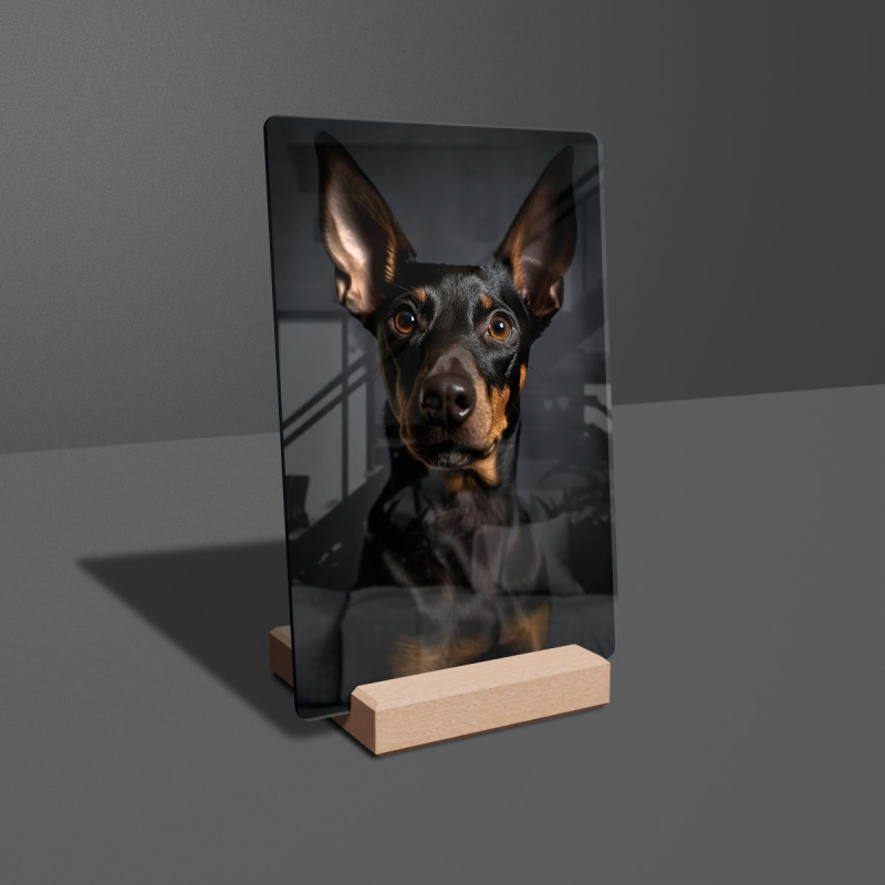 Dárková deska s digitální grafikou psa z akrylového skla.