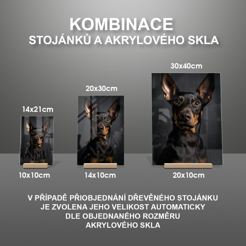 V případě přiobjednání dřevěného stojánku je zvolena jeho velikost automaticky dle objednaného rozměru akrylového skla viz produktové foto.