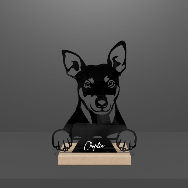 Tato interiérová dekorace je ideální pro všechny milovníky zvířat a každého, kdo má doma svého čtyřnohého miláčka. Vyberte plemeno svého pejska, vyplňte jeho jméno a udělejte si radost krásnou dekorací v podobě Vašeho pejska. Motiv je vyroben z akrylového materiálu, který je velmi odolný. Tuto dekoraci lze použít pro různé interiéry, jako obývací pokoje, kanceláře nebo i dětské pokoje. Zároveň se jedná o originální dárek pro všechny, kteří sdílí své srdce se svým čtyřnohým miláčkem.