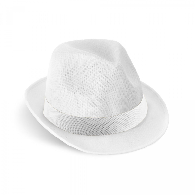 Čepice z PP (k dispozici v několika barvách) s bílou polyesterovou stuhou. Pro objednávky bez personalizace je stuha dodávána odděleně od klobouku. Velikost: 580 mm