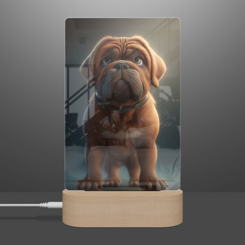 Součástí balení je akrylové sklo dle výběru, dřevěný RGB LED stojánek a napájecí USB kabel.