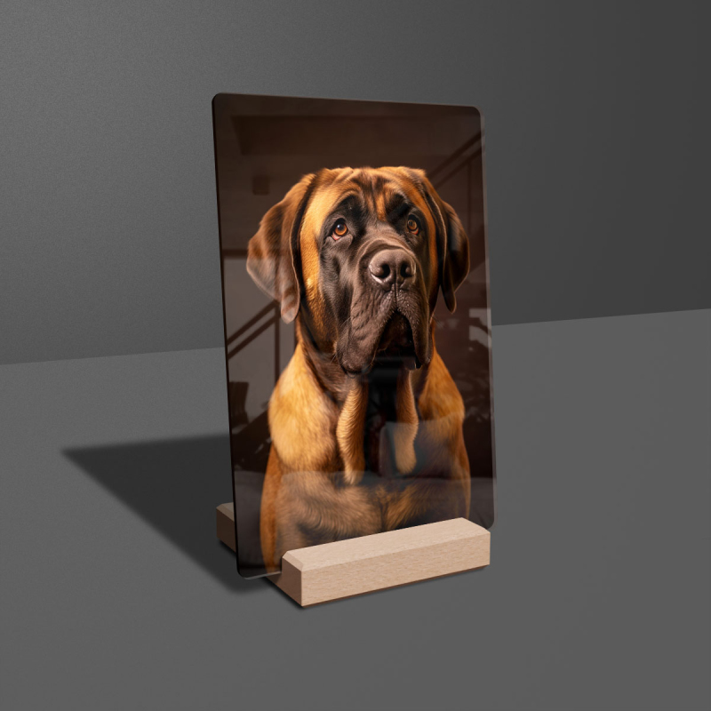 Dárková deska s digitální grafikou psa z akrylového skla.