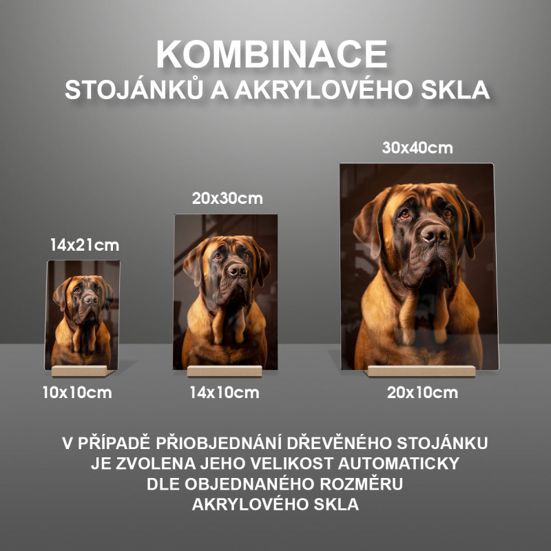V případě přiobjednání dřevěného stojánku je zvolena jeho velikost automaticky dle objednaného rozměru akrylového skla viz produktové foto.