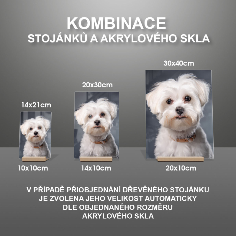 V případě přiobjednání dřevěného stojánku je zvolena jeho velikost automaticky dle objednaného rozměru akrylového skla viz produktové foto.