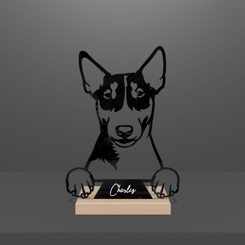 Tato interiérová dekorace je ideální pro všechny milovníky zvířat a každého, kdo má doma svého čtyřnohého miláčka. Vyberte plemeno svého pejska, vyplňte jeho jméno a udělejte si radost krásnou dekorací v podobě Vašeho pejska. Motiv je vyroben z akrylového materiálu, který je velmi odolný. Tuto dekoraci lze použít pro různé interiéry, jako obývací pokoje, kanceláře nebo i dětské pokoje. Zároveň se jedná o originální dárek pro všechny, kteří sdílí své srdce se svým čtyřnohým miláčkem.