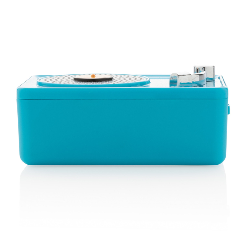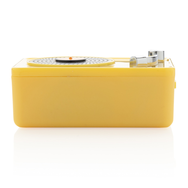Stylový 3W bezdrátový reproduktor v retro designu a trendy barvách. Čistý kvalitní přenos zvuku až na vzdálenost 10m zajišťuje bezdrátová technologie BT 5.0. Baterie s kapacitou 350 mAh umožňuje přehrávání po dobu až 3h na jedno nabití. Plné nabití za 2h. Baleno v retro dárkové krabičce. Včetně mikrofonu pro telefonování. Vyrobeno z ABS.
