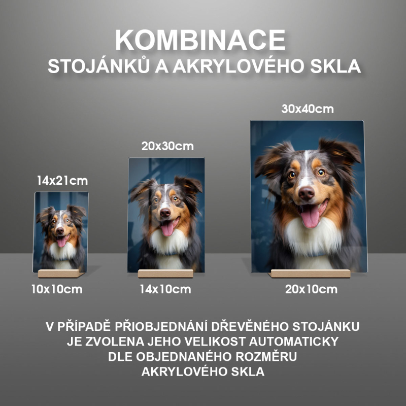 V případě přiobjednání dřevěného stojánku je zvolena jeho velikost automaticky dle objednaného rozměru akrylového skla viz produktové foto.