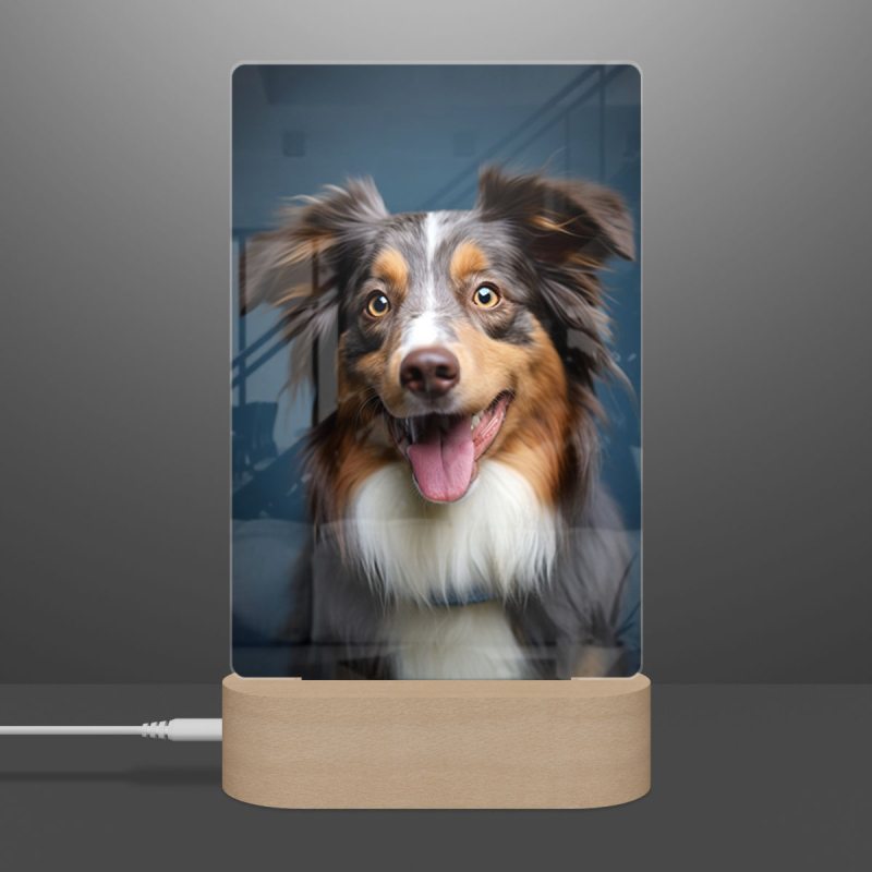 Lampa s digitální grafikou psa