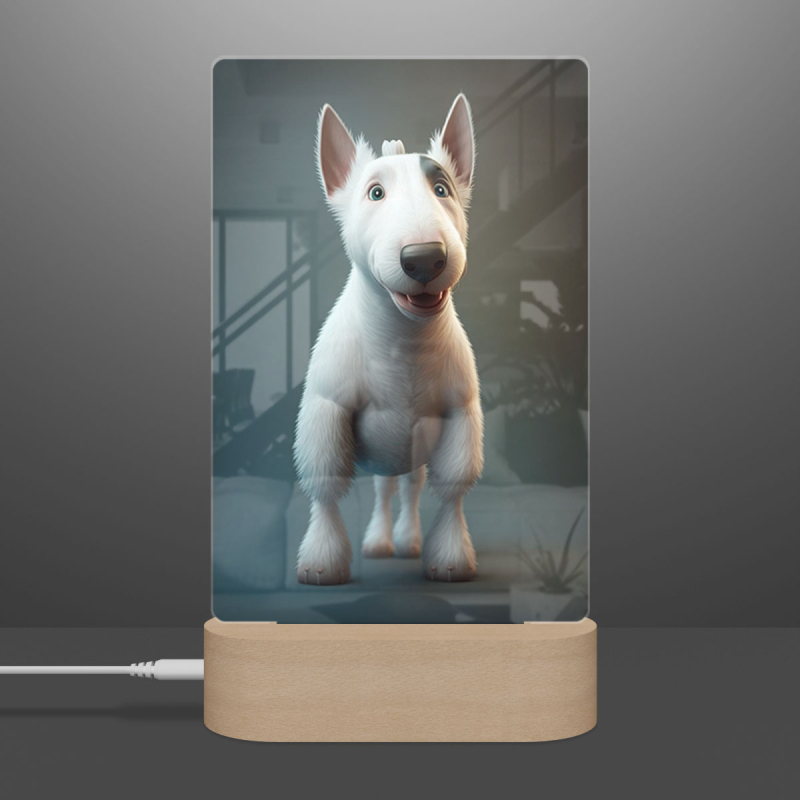 Součástí balení je akrylové sklo dle výběru, dřevěný RGB LED stojánek a napájecí USB kabel.