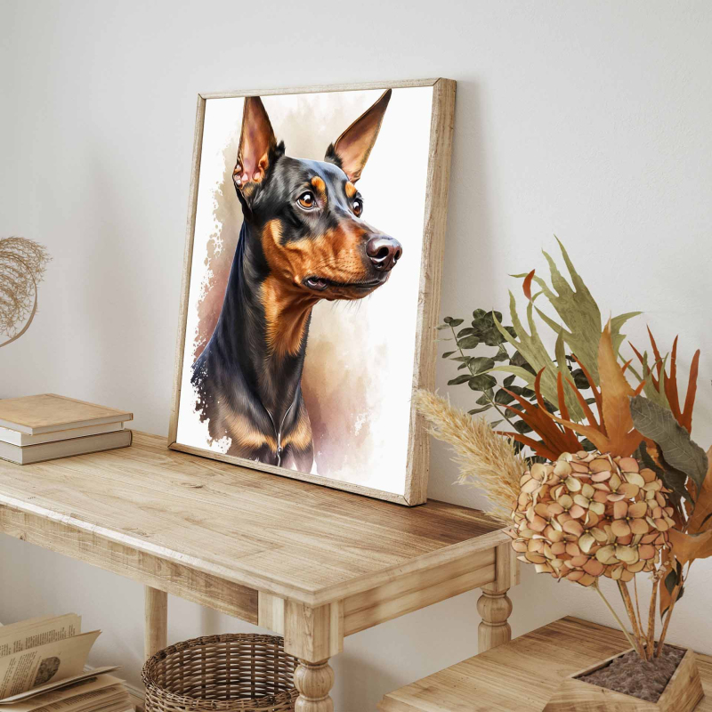 Miniaturní pinč akvarel