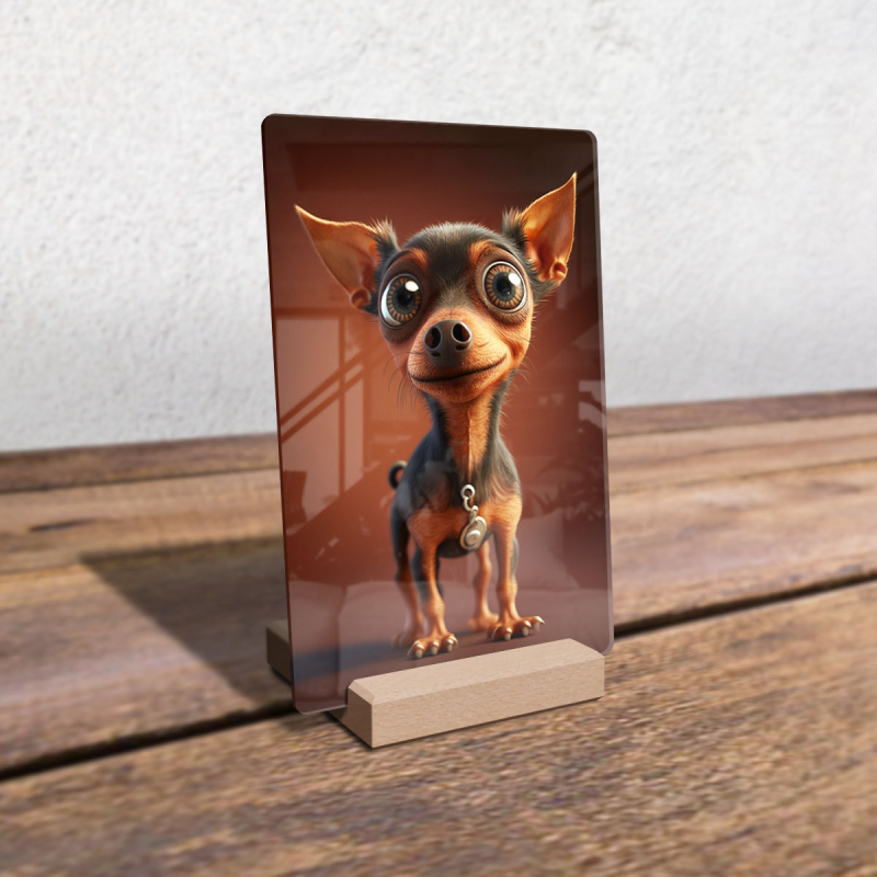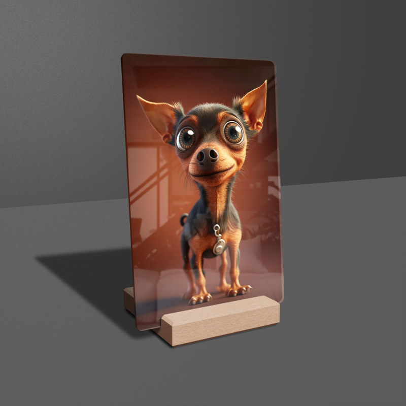 Dárková deska s digitální grafikou psa z akrylového skla.