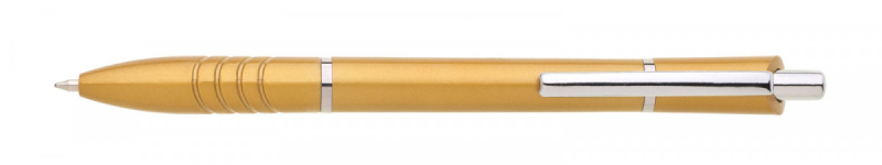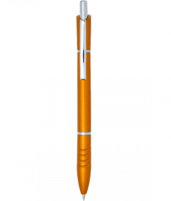 Plastové propisovací pero MIRA s modrým tělem. V úchopu je zdobené vylisovanými proužky v plastu a dále zdobené dvěma stříbrnými proužky. Náplň je velkoobsahová, modrá.