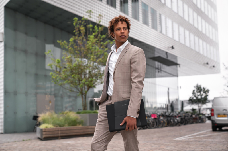Kamkoli jdete, vezměte si svou kancelář s sebou! Díky inovativnímu rozkládacímu designu tato přenosná pracovní stanice udrží vaše profesionální věci v pořádku a pohodlně na cestách. Jednoduše se rozložte a pomocí stojanů na magnet umístěte notebook na správnou pozici nebo použijte vnitřní povrch jako podložka pod myš. Mobilní kancelář pojme 13 "notebook a tablet až 12,9". Registrovaný design®