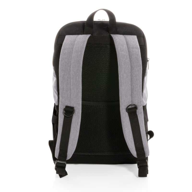 Stylový městský batoh ideální na každodenní cestování do práce. Vyrobený z odolného materiálu bez použití PVC. Hlavní prostor na zip s polstrovaným oddílem na 15,6" notebook, přední kapsa na každodenní drobnosti. Integrovaný USB port pro pohodlné nabíjení telefonu na cestách.
