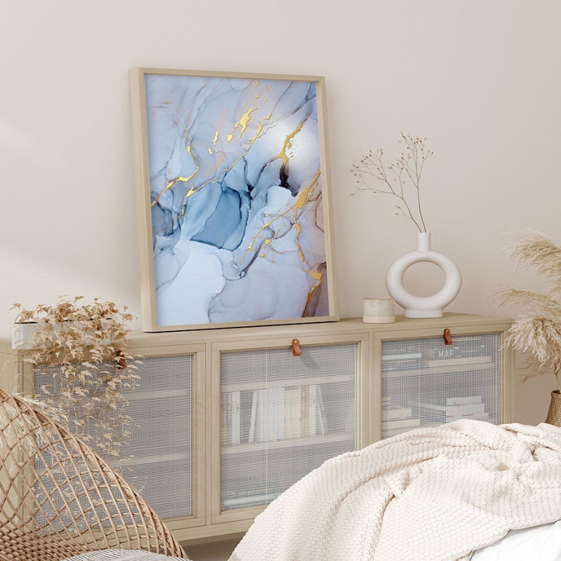 Modrá tekutá umělecká malba inkoustem 3D Zlatý Plakát