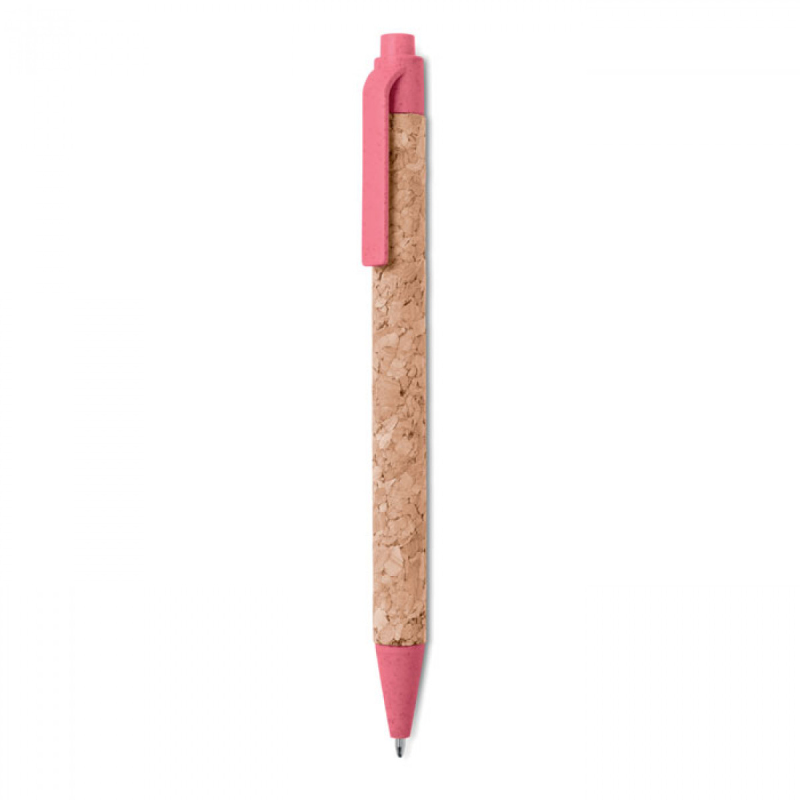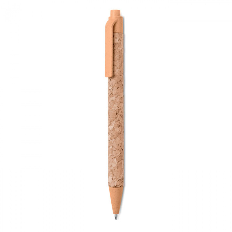 ECO Kuličkové pero vyrobené z korku, pšeničných vláken a ABS plastu. Modrý inkoust. Korek je přírodní materiál, vzhledem ke své struktuře a povrchové pórovitosti může být výsledek tisku na stejných předmětech rozdílný.
