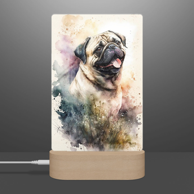 Součástí balení je akrylové sklo dle výběru, dřevěný RGB LED stojánek a napájecí USB kabel.