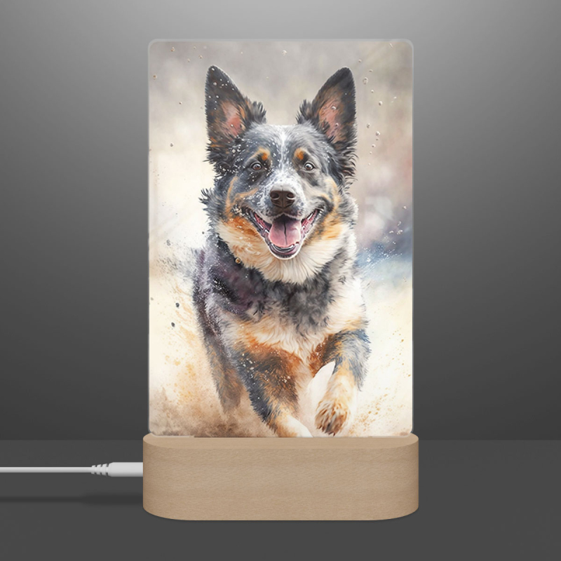 Lampa s digitální grafikou psa