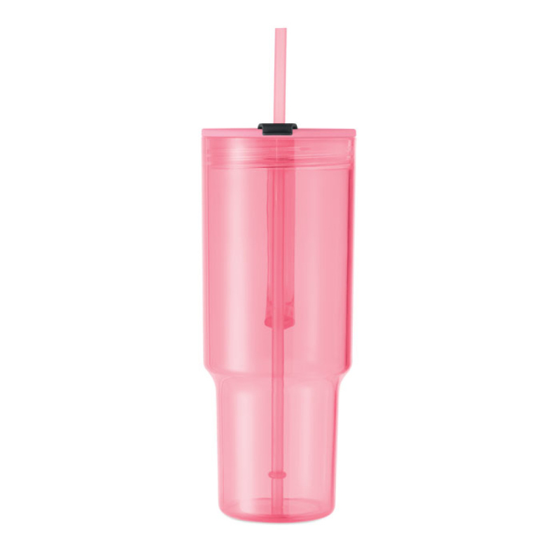 Průhledný hrnek z RPET s víčkem a PP brčkem. Objem: 1200 ml.