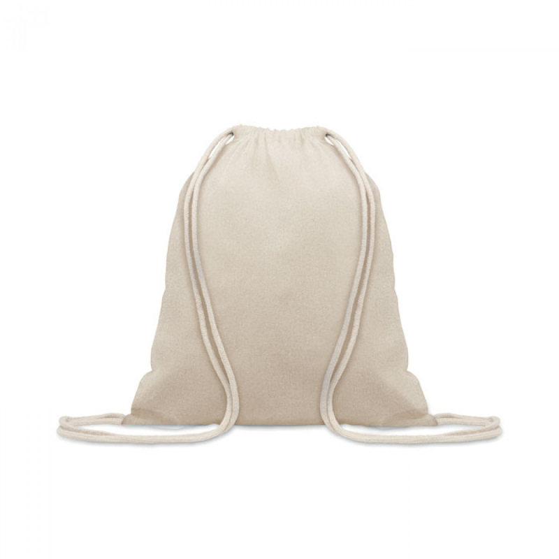 Stahovací batoh z recyklované 140g bavlny s krátkými uchy.