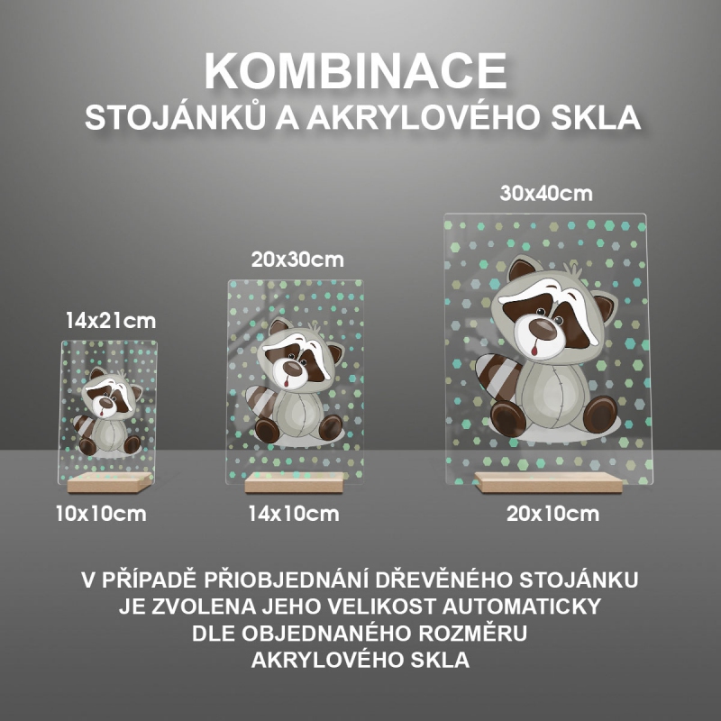 V případě přiobjednání dřevěného stojánku je zvolena jeho velikost automaticky dle objednaného rozměru akrylového skla viz produktové foto.