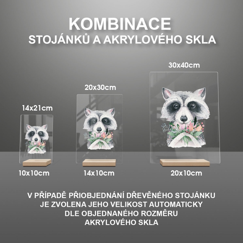 V případě přiobjednání dřevěného stojánku je zvolena jeho velikost automaticky dle objednaného rozměru akrylového skla viz produktové foto.
