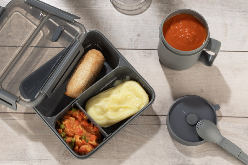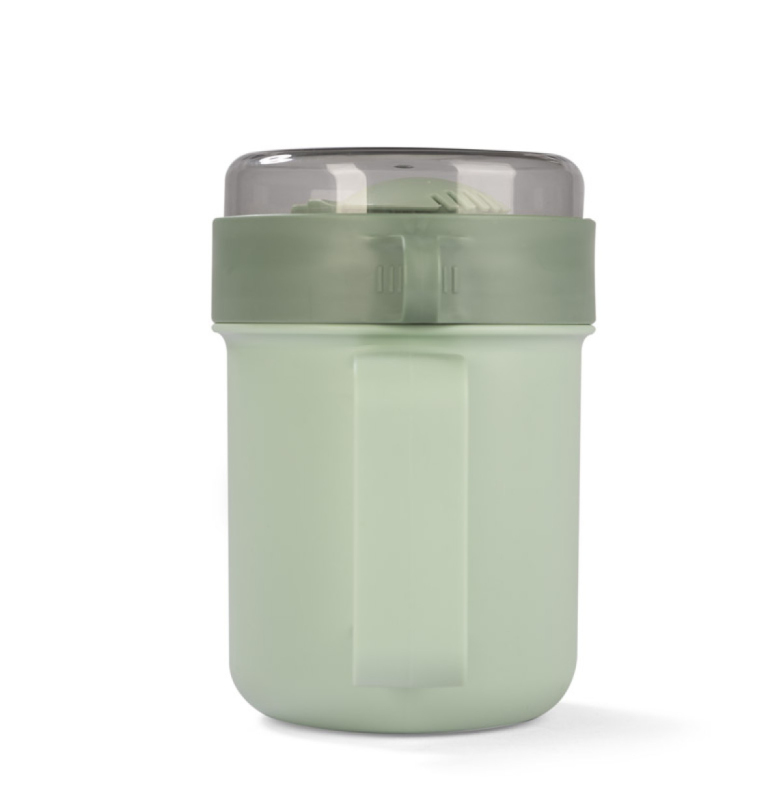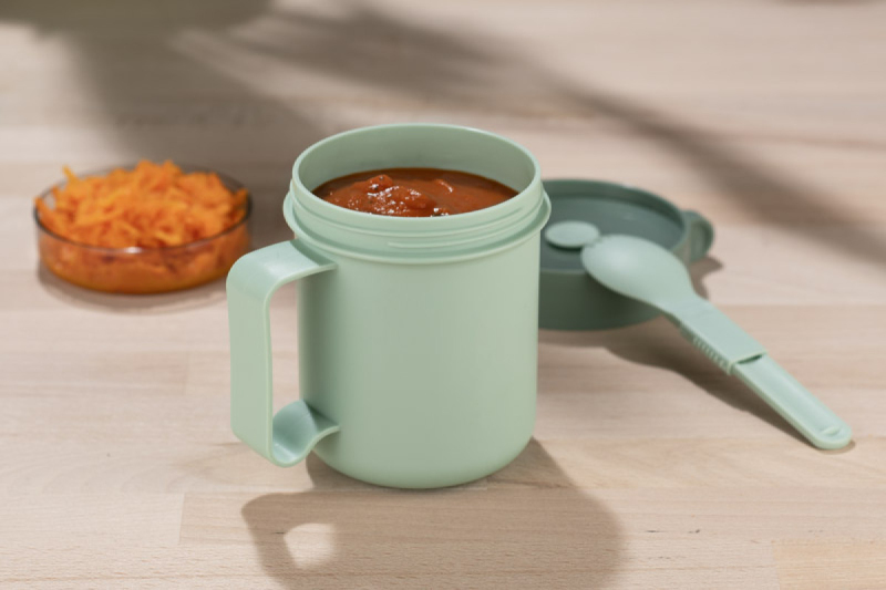 Nádoba na polévku NODSY je užitečná a praktická pomůcka. Je vynikajícím řešením, jak si vzít polévku s sebou například do práce. Má pohodlnou rukojeť a připojenou skládací vidličku se lžící. Nádoba je vhodná pro použití v mikrovlnné troubě, myčce na nádobí a lze v ní také mrazit. Objem 500 ml.
