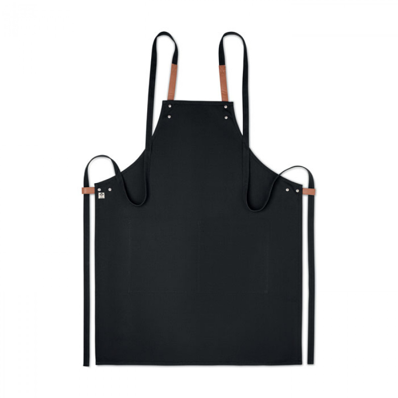 Nastavitelná kuchařská zástěra se 2 předními kapsami z 340 g/m² organické bavlny a plátna. Vyrobeno podle certifikované normy pro používání škodlivých látek v textilu.