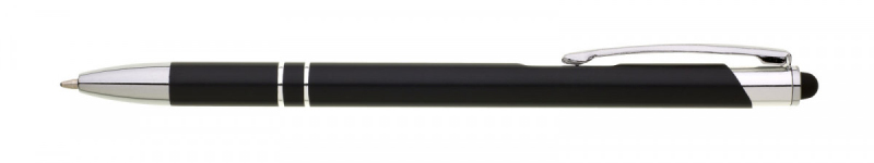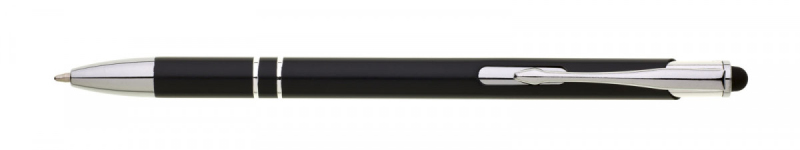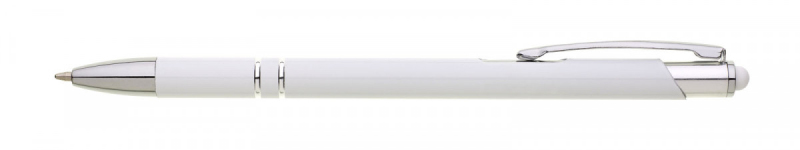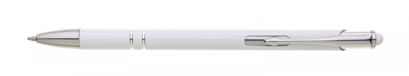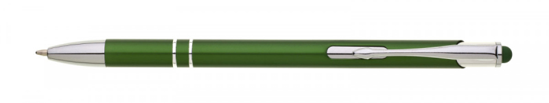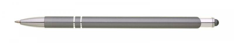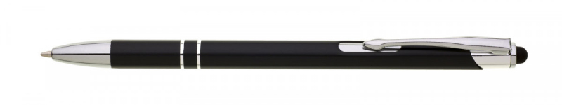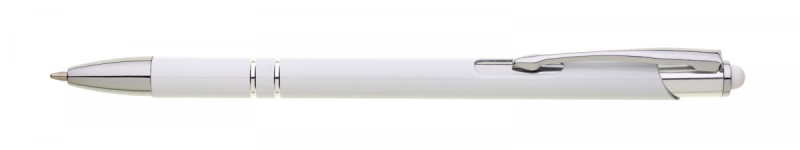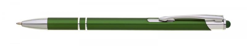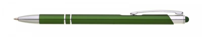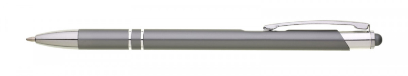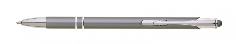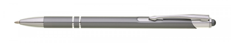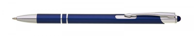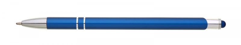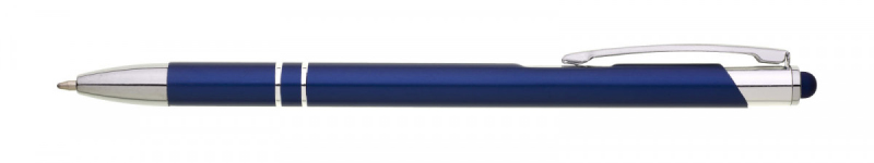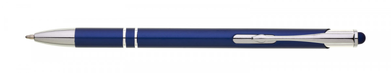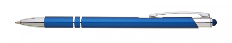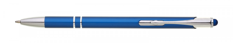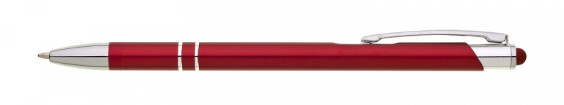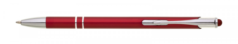 Tenká červená hliníková propiska s chromovými doplňky a touchem v barvě těla. Náplň X20 modře píšící.