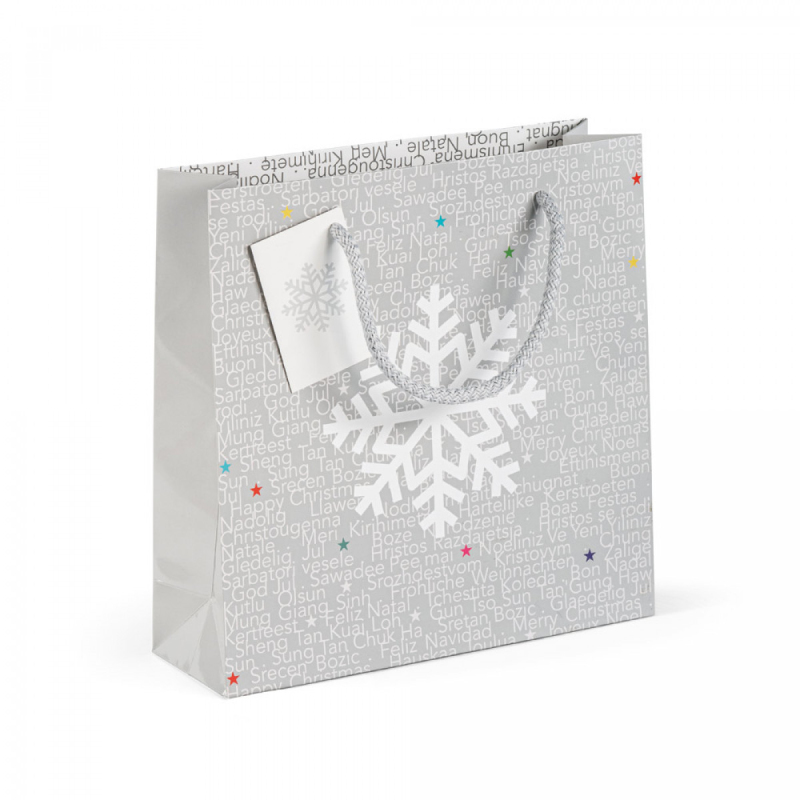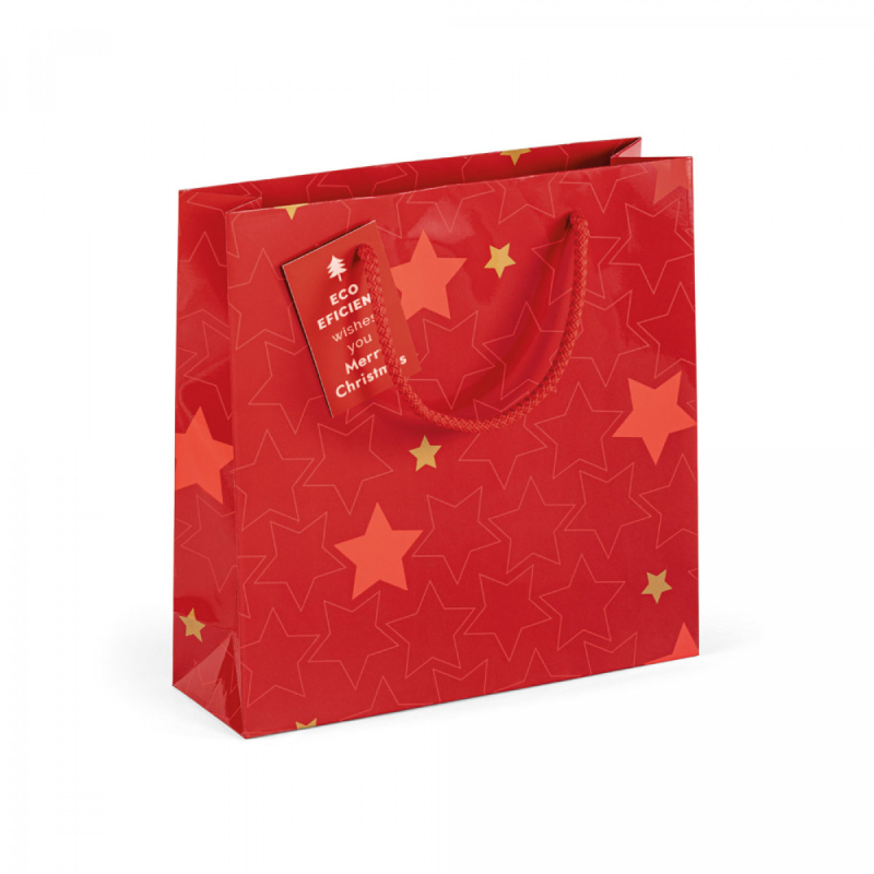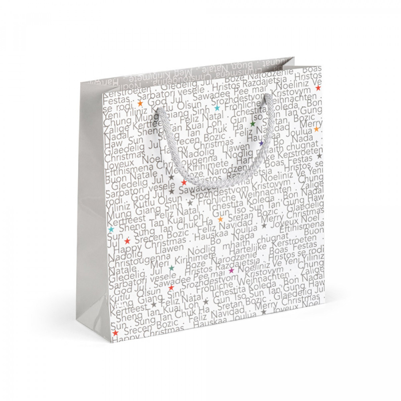 Potažená papírová taška s lesklou laminací (170 g/m2). Lepená základna a přizpůsobitelná karta. 250 x 250 x 80 mm | Šňůrka: ø6 x 350 mm