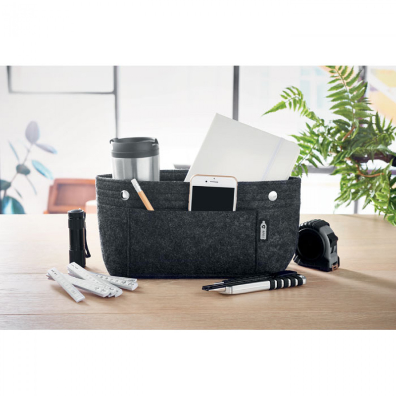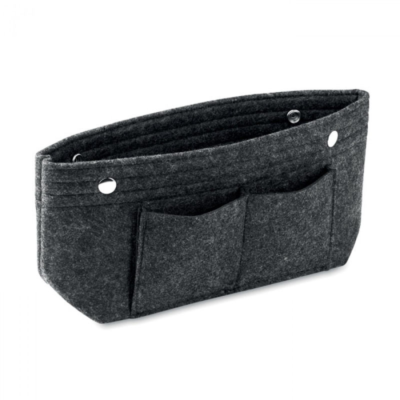 Cestovní organizér z plsti RPET s 5 vnitřními a 3 vnějšími přihrádkami.