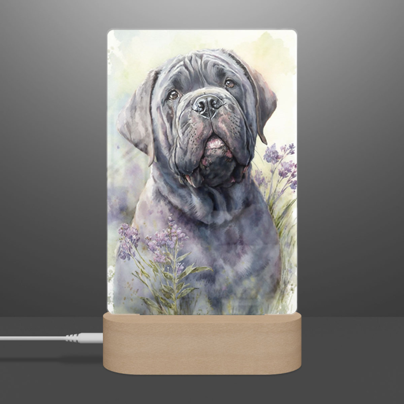 Součástí balení je akrylové sklo dle výběru, dřevěný RGB LED stojánek a napájecí USB kabel.