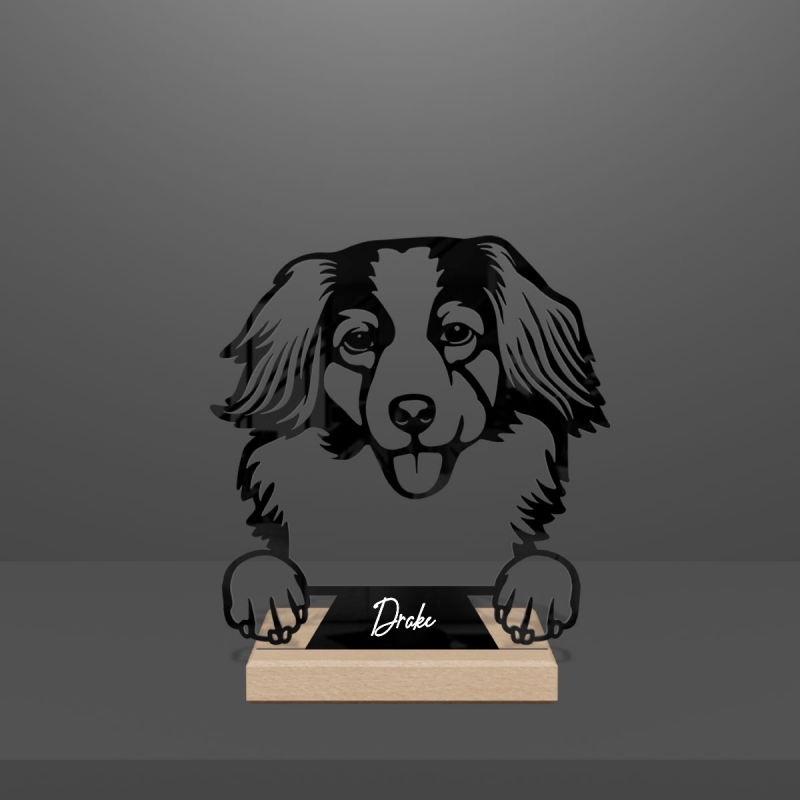 Tato interiérová dekorace je ideální pro všechny milovníky zvířat a každého, kdo má doma svého čtyřnohého miláčka. Vyberte plemeno svého pejska, vyplňte jeho jméno a udělejte si radost krásnou dekorací v podobě Vašeho pejska. Motiv je vyroben z akrylového materiálu, který je velmi odolný. Tuto dekoraci lze použít pro různé interiéry, jako obývací pokoje, kanceláře nebo i dětské pokoje. Zároveň se jedná o originální dárek pro všechny, kteří sdílí své srdce se svým čtyřnohým miláčkem.