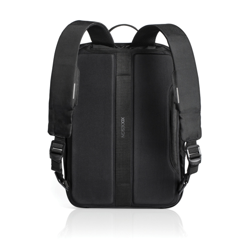 Bobby Bizz je jedinečný stylový batoh, který je možné jednoduše proměnit v elegantní brašnu. Je navíc vybaven speciálním systémem skrytých zipů a kapes a v kombinaci s neproříznutelným materiálem jednoduše nelze vykrást. Je vyroben z vysoce kvalitního polyesteru doplněného o reflexní prvky, které zajistí vaši bezpečnost i za tmy. Vnitřní část nabízí polstrované přihrádky pro až 15,6" notebook, až 10" tablet a ostatní zařízení. Další množství skrytých kapes na vnější části pak usnadňuje každodenní cestování. Vestavěný kovový rám chrání vaše věci a zároveň udržuje perfektní tvar batohu. Je vybaven bezpečnostní karabinou pro uchycení batohu k pevným předmětům pro případ nepozornosti a popruhem pro připevnění ke kufru. Ochranný vzor®