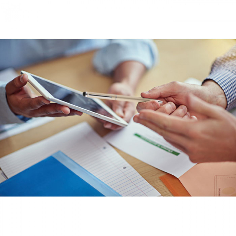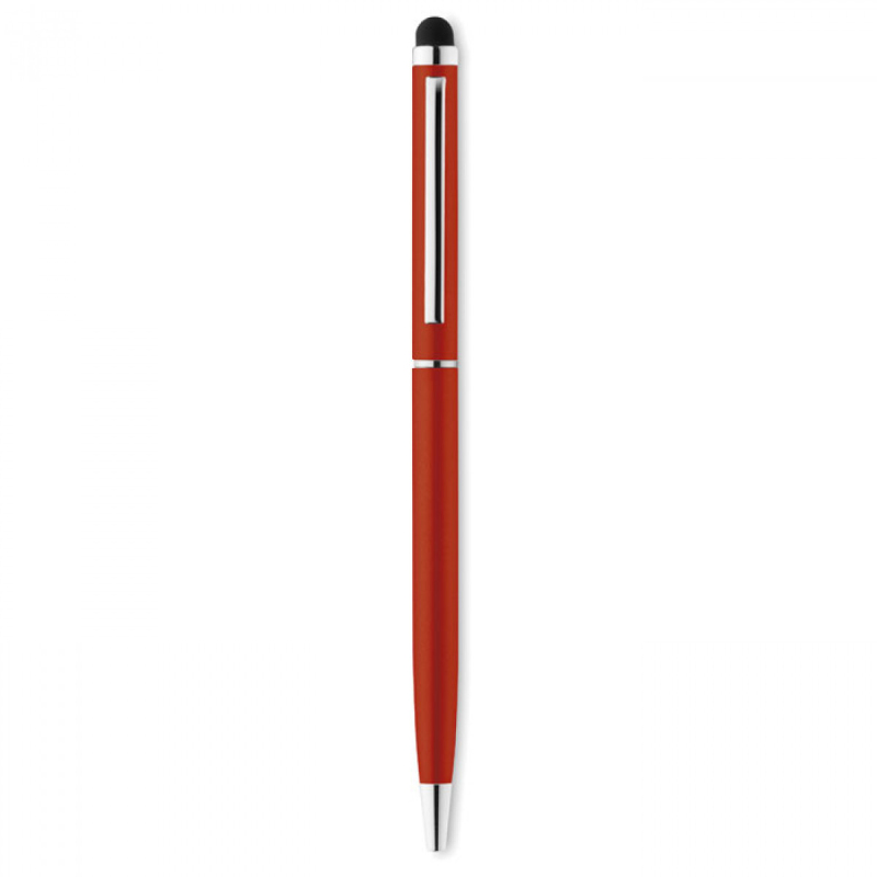 Hliníkové kuličkové pero s lesklým chromovým klipem a dotykovou špičkou. Modrý inkoust.
