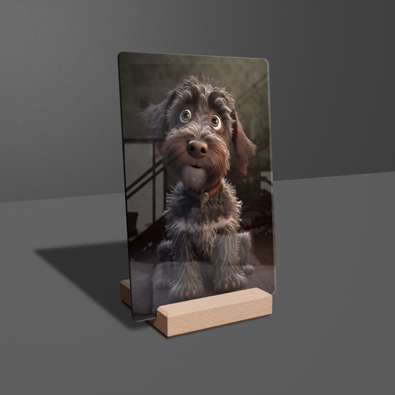 Dárková deska s digitální grafikou psa z akrylového skla.