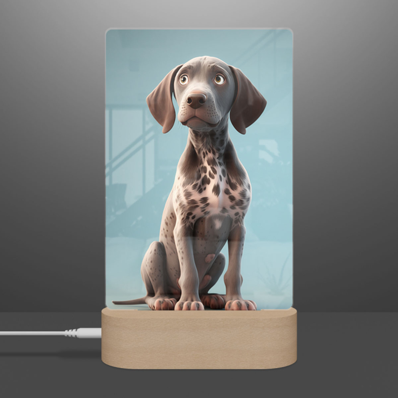 Součástí balení je akrylové sklo dle výběru, dřevěný RGB LED stojánek a napájecí USB kabel.