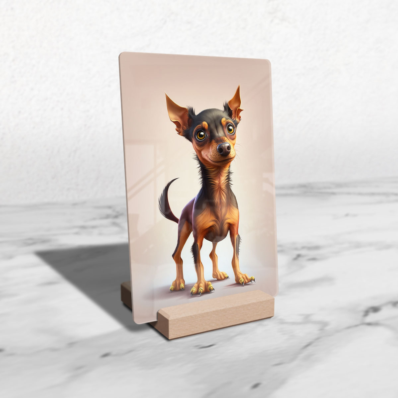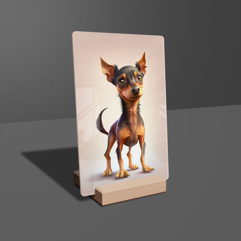 Dárková deska s digitální grafikou psa z akrylového skla.