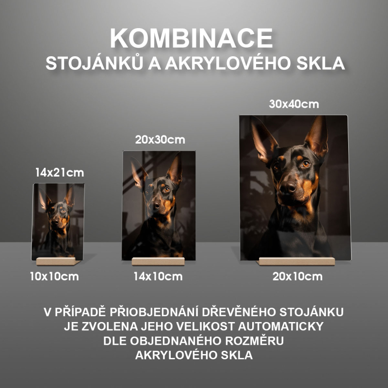 V případě přiobjednání dřevěného stojánku je zvolena jeho velikost automaticky dle objednaného rozměru akrylového skla viz produktové foto.
