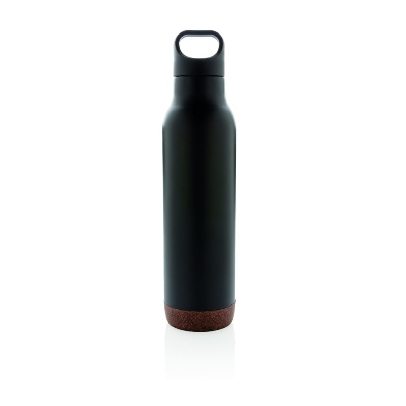 Vakuově izolovaná nepropustná termo láhev z odolné nerezavé oceli 304 SS uvnitř a 201 SS vně. Unikátní korkový detail na spodní části. Láhev udrží nápoje horké po dobu až 5h a studené až 15h. Objem: 600ml.