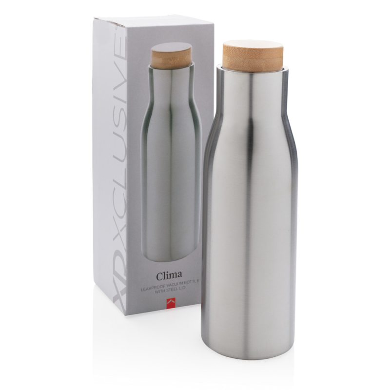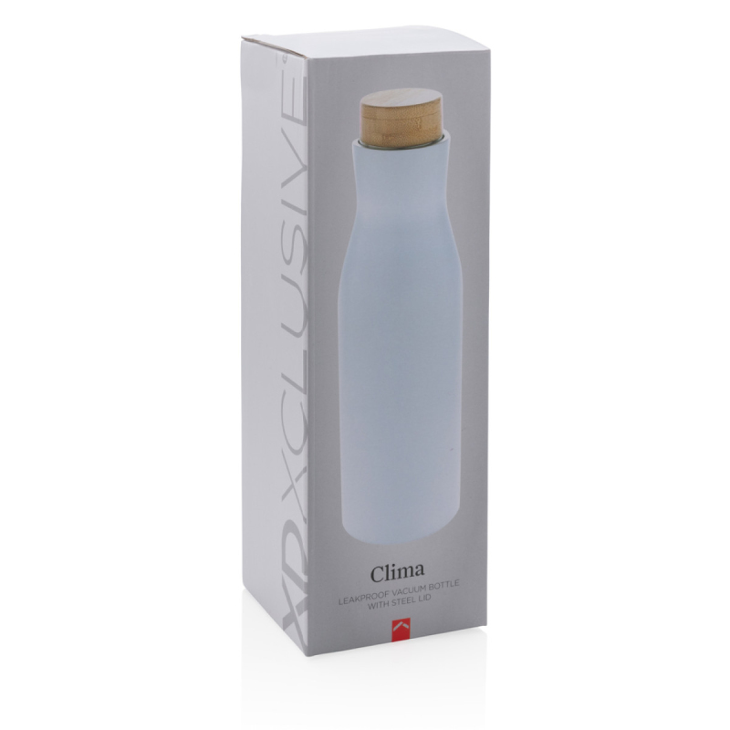 Termo láhev Clima vyrobená z nerezavějící oceli včetně nepropustného uzávěru. Nápoje uchová až 5h horké a až 15h studené. Objem: 500ml. Bez použití plastů a bez BPA. Ochranný vzor®