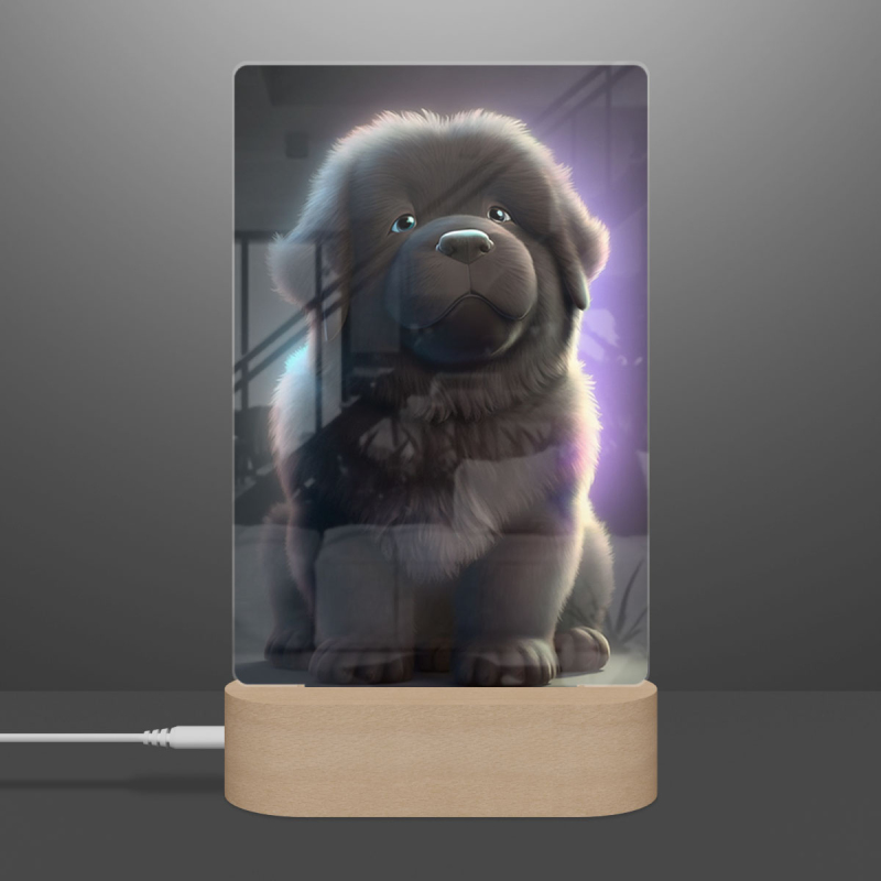 Součástí balení je akrylové sklo dle výběru, dřevěný RGB LED stojánek a napájecí USB kabel.