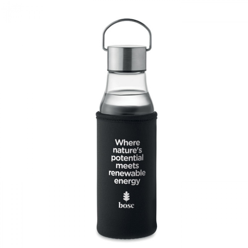 Skleněná láhev s nerezovým víčkem a držákem. Objem: 500 ml.