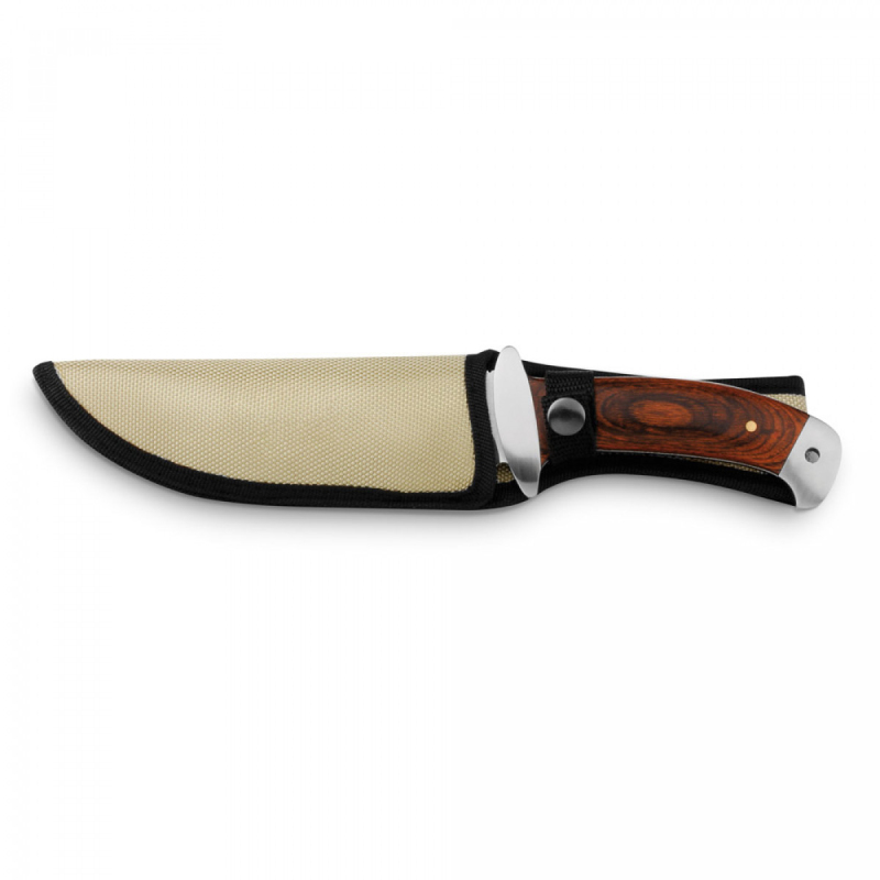 Lovecký nůž z nerez oceli a dřeva, dodáván v polyesterovém pouzdře z 600D. 300 x 19 x 60 mm