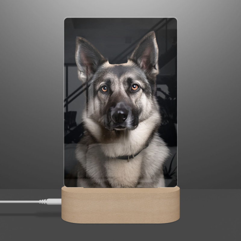 Lampa s digitální grafikou psa