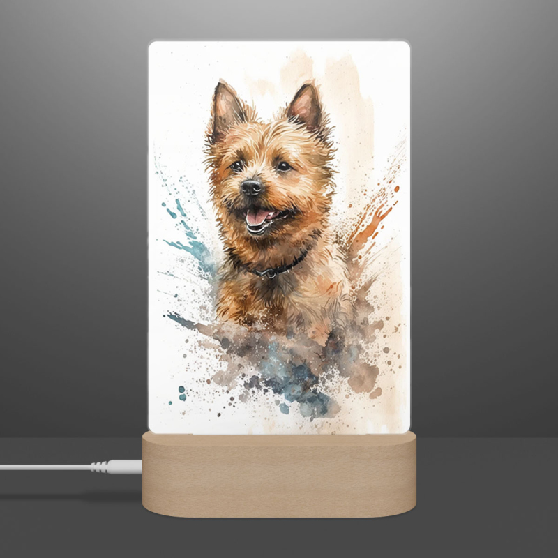 Součástí balení je akrylové sklo dle výběru, dřevěný RGB LED stojánek a napájecí USB kabel.