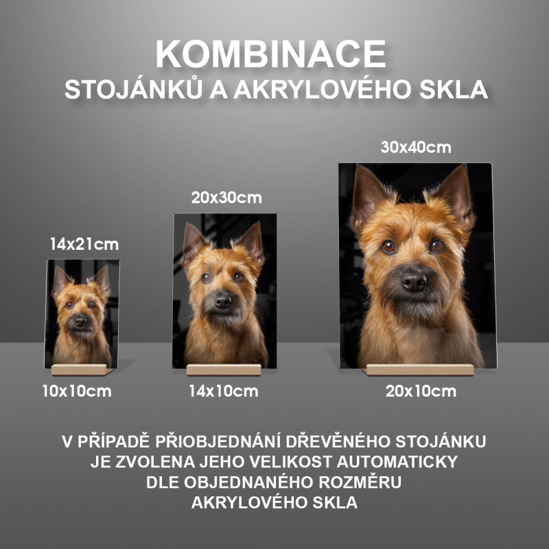 V případě přiobjednání dřevěného stojánku je zvolena jeho velikost automaticky dle objednaného rozměru akrylového skla viz produktové foto.